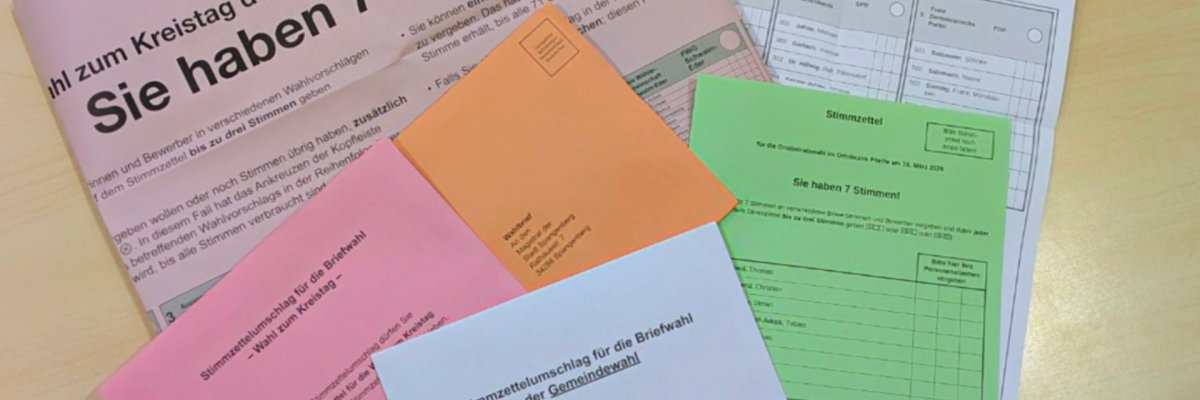 Als wahlberechtigte Bürgerinnen und Bürger haben Sie die Möglichkeit per Briefwahl zu wählen oder am Wahltag Ihr Wahllokal aufzusuchen. Ihre Briefwahl-Unterlagen können Sie im Zeitraum vom 02.02.2026 bis 10.03.2026 beantragen.